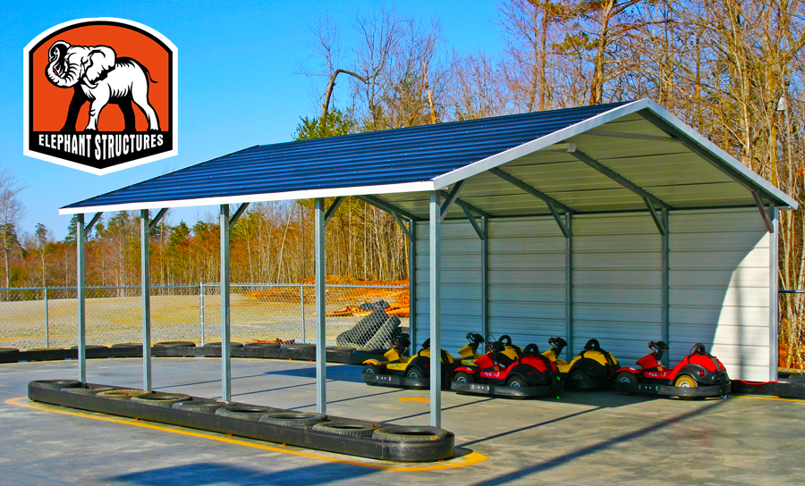 Here at Elephant Structures and Carport.com, we seriously have the best customers. Recently we wrote up a list of crazy carport uses, but we just can’t seem to get as creative as our customers. We love the carport below, which serves as a starting line, finish line, and cover for a go-kart course.