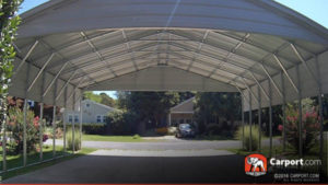 Regardless of the season, carport.com have options galore in our online catalog to restore your peace of mind this season. We have several feature vertical roof carports that are capable of withstanding snow loads of 40 pounds per square foot and wind speeds of 130 miles per hour. The featured model above is a great way to protect two cars or trucks this winter. This custom metal carport is built with a strong vertical roof for ultimate protection from bad weather and debris.  Measuring 20′ wide x 26′ long x 10′ tall, this carport offers a total of 520 square feet of storage space for your two cars or trucks.  It is designed with gabled ends and two 3’ side panels for added shielding from the elements.  You can customize this carport for anything you need, including choosing from our wide color selection.