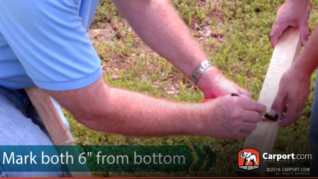 The landowner is responsible for ensuring the site is level, and additional fees may apply if the site is not. First, take two posts, mark 6” from the bottom, and attach a string the length of the site to the two posts in order to ensure the distance of the building can be covered. It doesn’t hurt to go farther than necessary to ensure adjustments are possible.
